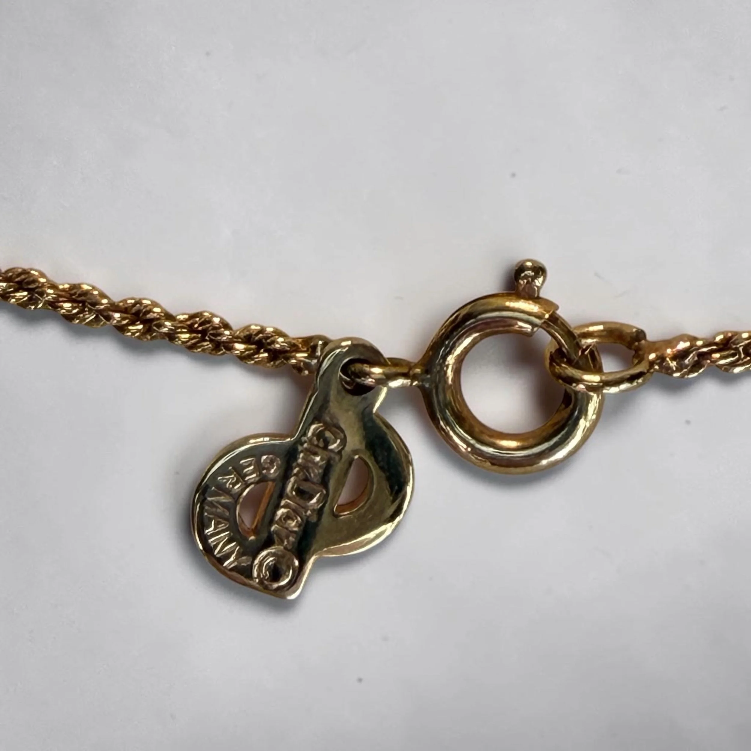 Jewelry Jewelry Clear Filters Categories Select a Category Jewelry Backpacks Scarves Accessories Wallets Handbags & Purses COA Filter Clear Filter Louis Vuitton Glace Monogram Wrap Bracelet Condition: Very GoodCalfskinNormal signs of wear but doesn’t affect structure of braceletComes with box and cardsComes with original COA $200.00 Tiffany & Co. Paloma Picasso Loving Heart Pendant Condition: Very good No tarnishing Sterling SilverComes with Original COA $230.00 Versace Black Braided Leather Medusa Charm Bracelet Condition: Excellentblack double-braided leather cordadjustable knot closuregold-tone hardware with crystal-embellished Greca "bar" buckle/logodangling Medusa head charmDoes not come with COA $110.00 Vintage Christian Dior Gold Necklace Condition: Very GoodMinor factory enamel over-pour on the side of the pendant, hardly noticeable when worn and common of hand-finished vintage Dior piecesComes with original COA $229.00 Vintage Givenchy Silver Chain Necklace Condition: Very GoodMeasurements: 15in lengthComes with original COA $100.00 No results found No results match your search. Try removing a few filters.
