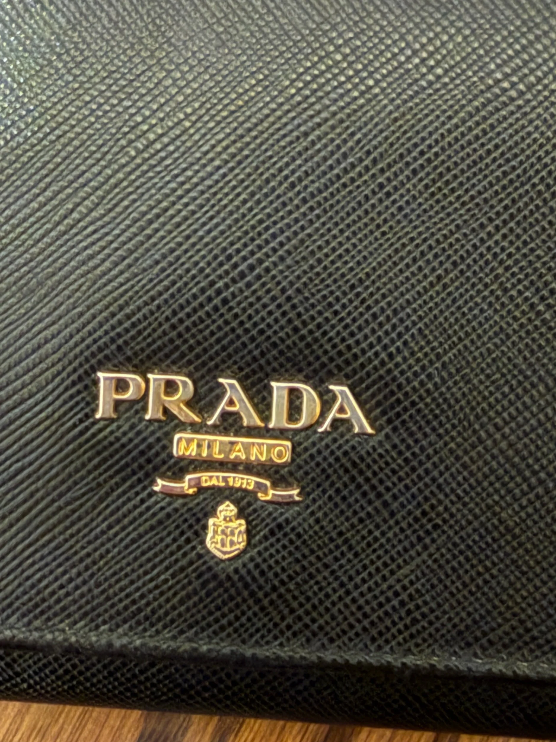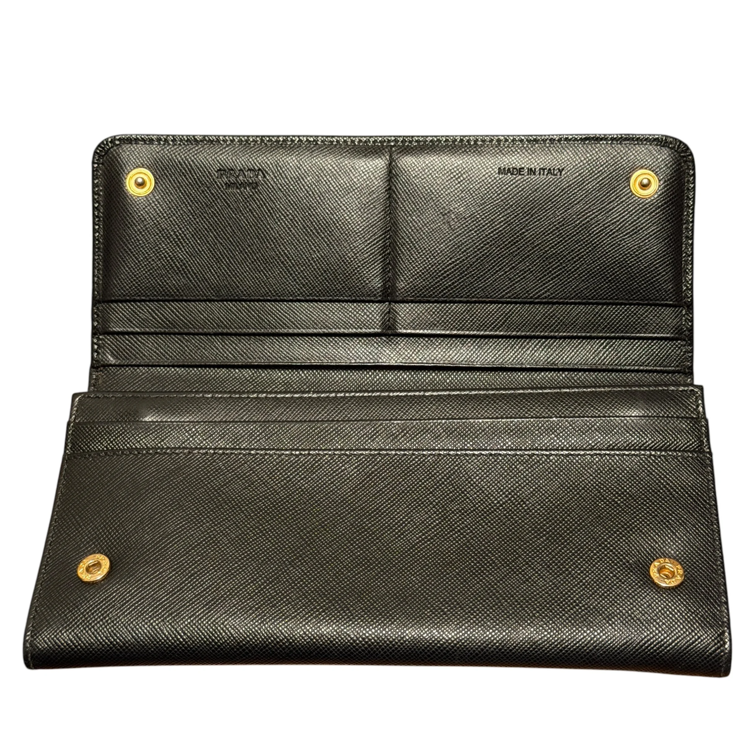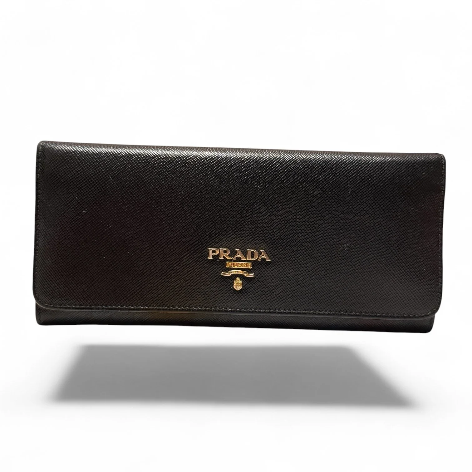 Store › Prada Black Saffiano Long Wallet Image 1 of 7 Image 2 of 7 Image 3 of 7 Image 4 of 7 Image 5 of 7 Image 6 of 7 Image 7 of 7 Prada Black Saffiano Long Wallet $379.00 Condition: Excellent Faint mark on frontPristine inside and outComes with original COA cards and printed COA ADD TO CART Added! Condition: Excellent Faint mark on frontPristine inside and outComes with original COA cards and printed COA