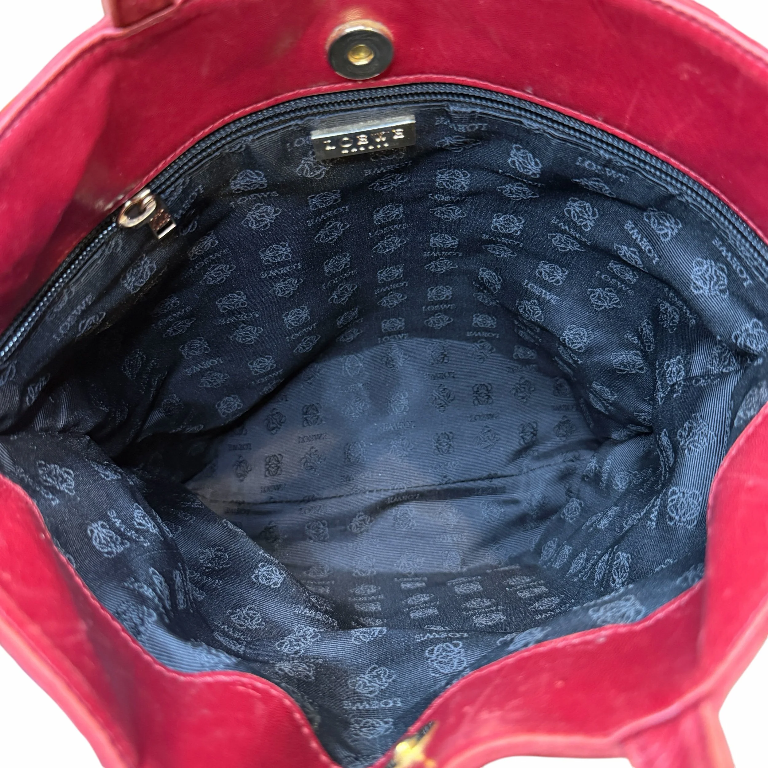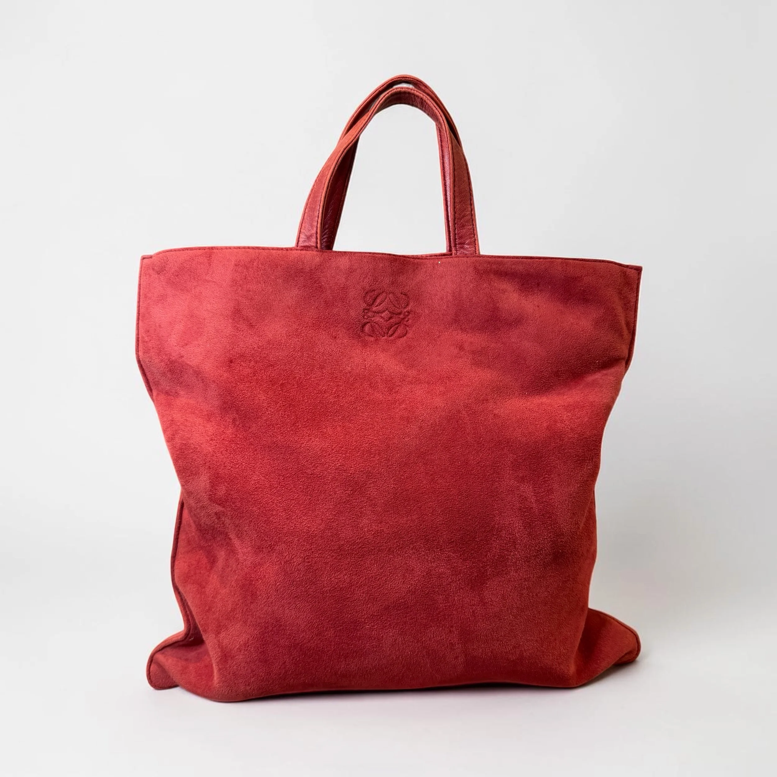 Store › Loewe Vintage Red Suede Anagram Tote Image 1 of 6 Image 2 of 6 Image 3 of 6 Image 4 of 6 Image 5 of 6 Image 6 of 6 Loewe Vintage Red Suede Anagram Tote $450.00 Condition: Very Good Some leather wear on interior Includes original control card Comes with COA Add To Cart Added! Condition: Very Good Some leather wear on interior Includes original control card Comes with COA